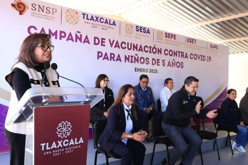 Con la finalidad de fortalecer la protección de la salud de la población infantil del estado, la gobernadora Lorena Cuéllar Cisneros encabezó el arranque de la campaña de vacunación contra COVID-19 en niñas y niños de cinco años en el jardín de niños “Jaime Torres Bodet”, en la comunidad de Atlahapa de Tlaxcala.