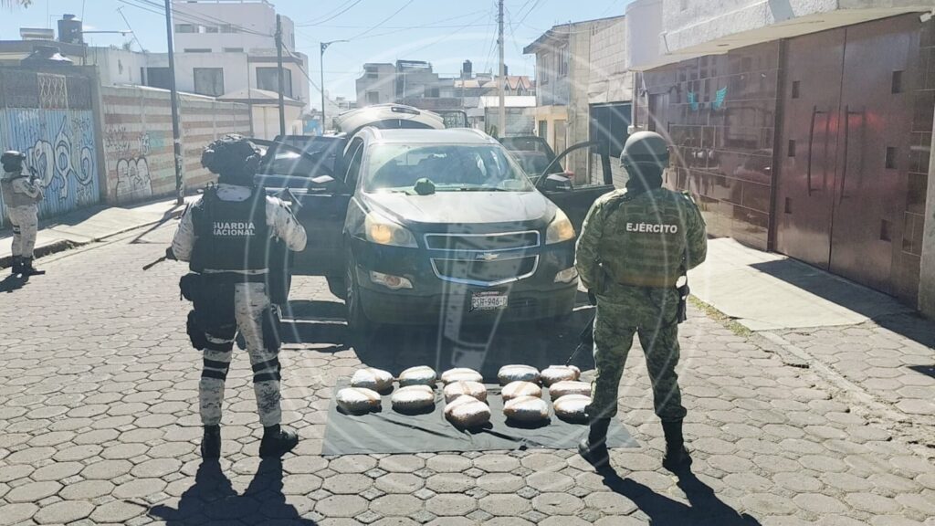 La Guardia Nacional y el Ejército Mexicano lograron interceptar una camioneta Chevrolet Traverse con 13 paquetes de sustancias ilícitas, presuntamente marihuana, en la calle 5 de febrero norte, esquina con Ayuntamiento, en el barrio de Tlaltepango, San Pablo del Monte durante esta tarde.