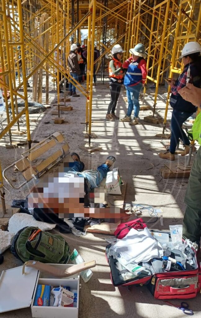 Un trabajador de la construcción de aproximadamente 45 años sufrió una caída de cuatro metros de altura mientras laboraba en una obra ubicada en la carretera Ocotlán-Chiautempan, cerca de la antigua IBERO, en Tlaxcala, aproximadamente a las 13:00 horas.