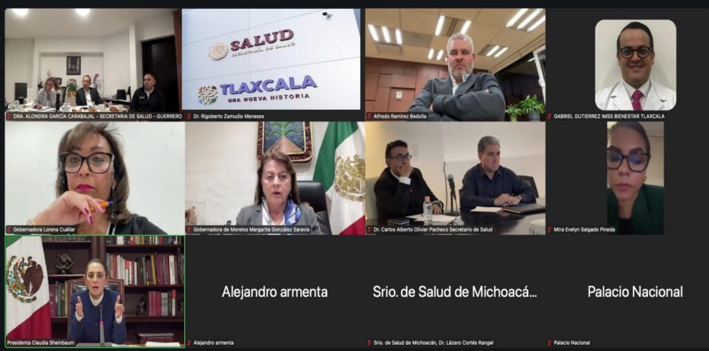La presidenta de México, Claudia Sheinbaum Pardo, encabezó una reunión virtual con gobernadores, en la que participó la mandataria Lorena Cuéllar Cisneros, para revisar los avances del sistema IMSS-Bienestar.