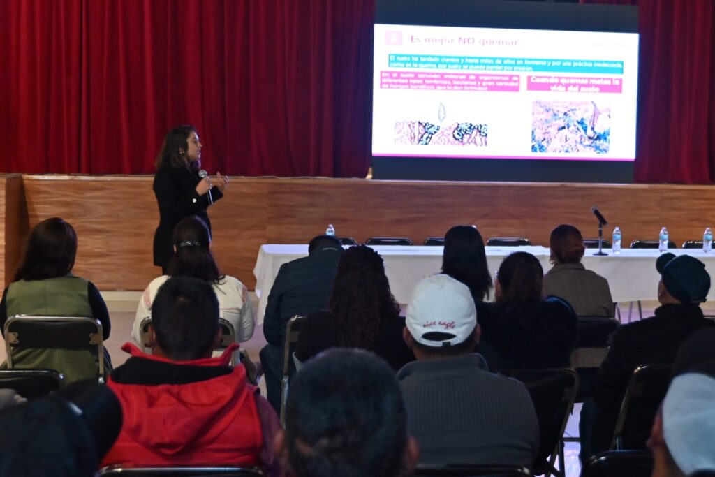 En el marco del evento, los productores locales participaron en una charla sobre los riesgos de las quemas agrícolas, impartida por Griselda Velasco Rodríguez, representante del Centro de Apoyo al Desarrollo Rural (Cader) de Huamantla. Ahí se destacó que esta práctica erosiona la tierra, destruye el hábitat de microorganismos esenciales y representa un peligro para la seguridad de las personas, por lo que el llamado fue a evitar este tipo de prácticas.