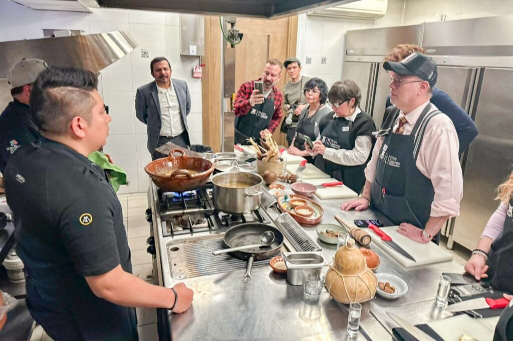Durante esta feria se presentó una serie de actividades que subrayan la riqueza de su patrimonio cultural. En este sentido, este día se llevó a cabo un taller culinario enfocado en el famoso mole prieto, uno de los platillos más icónicos de la región, dirigido por el chef Francisco Gutiérrez Lara, quien estuvo acompañado de los chefs Iván del Razo y Jorge Dávalos. Este taller fue destinado a medios de comunicación e influencers destacados tanto de España como de México, como la reconocida Jimena Pérez, conductora de televisión en México y experta en gastronomía en Madrid.