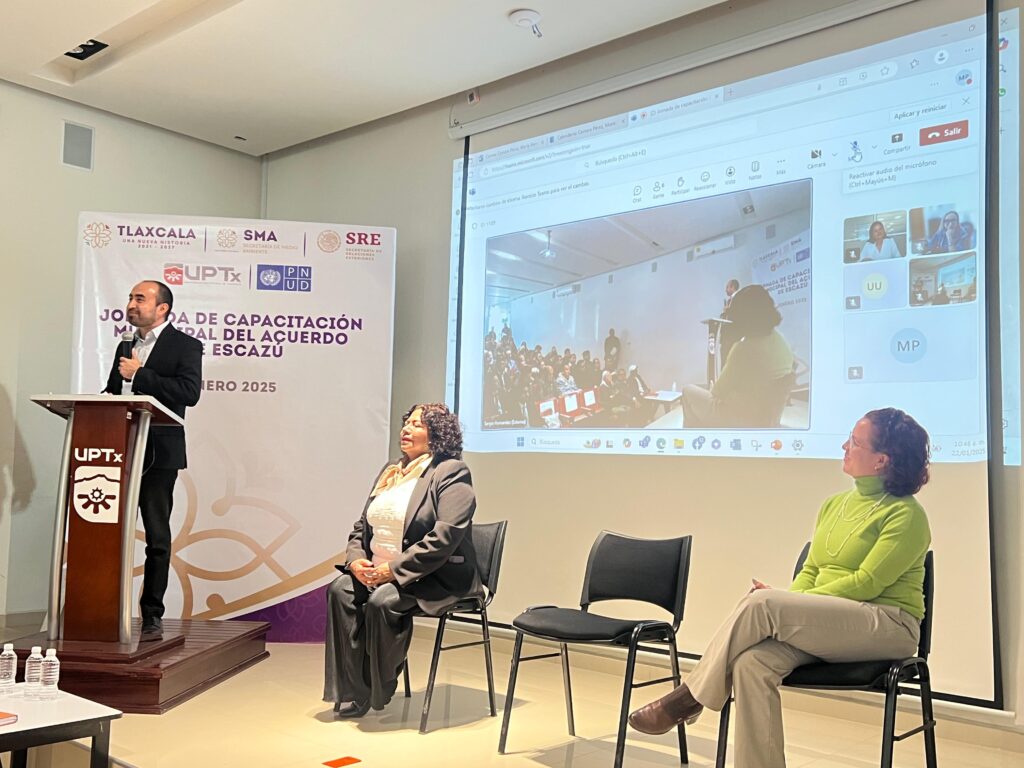 En las instalaciones de la Universidad Politécnica de Tlaxcala (UPTx), el titular de la SMA, Pedro Aquino Alvarado, informó que el Acuerdo de Escazú es el primer instrumento que contiene disposiciones sobre la protección a personas defensoras de derechos humanos en asuntos ambientales y que su propósito es garantizar la implementación plena y efectiva de los derechos en la materia, mediante la cooperación internacional, para crear y fortalecer las capacidades correspondientes de los estados.