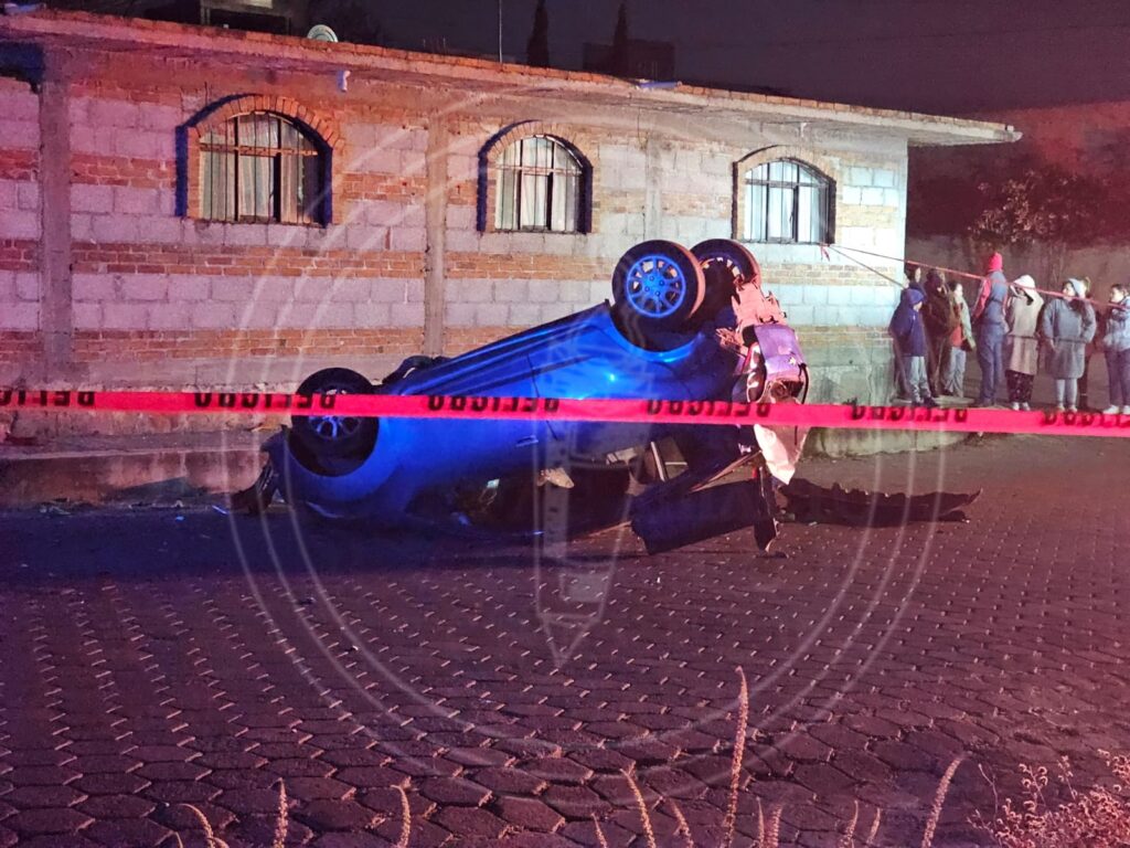 Las primeras investigaciones sugieren que el vehículo azul impactó contra la banqueta y volcó, aparentemente por exceso de velocidad, pero también existe la versión de que otra unidad lo sacó del camino.