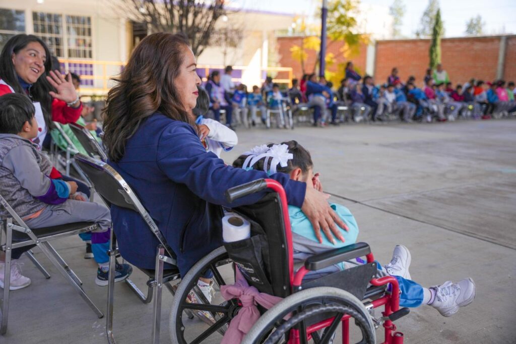 La presidenta honorífica del Comité Consultivo de Bienestar y Desarrollo Social del estado, Fernanda Espinosa de los Monteros Cuéllar, encabezó la entrega de juguetes a infantes del Centro de Atención Múltiple (CAM), número 2, del municipio de Tzompantepec, con la finalidad de fomentar la inclusión de niñas y niños con discapacidad que asisten a este plantel.