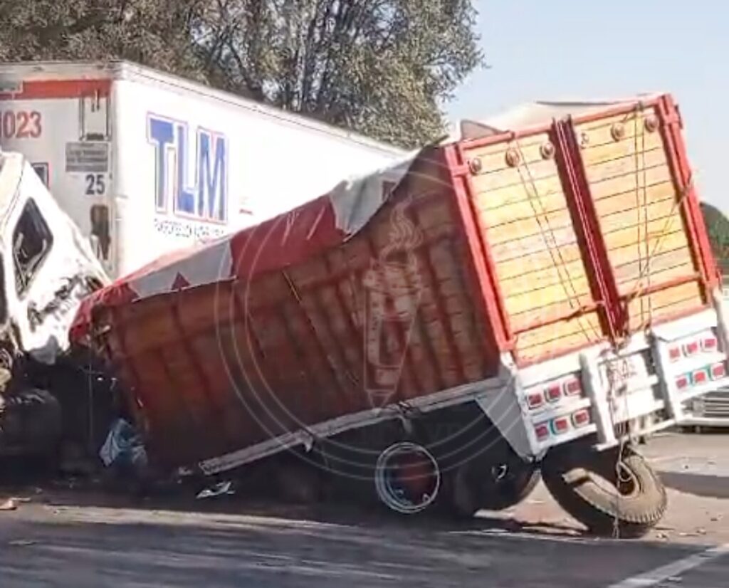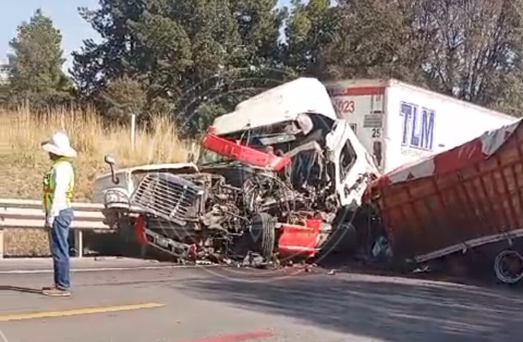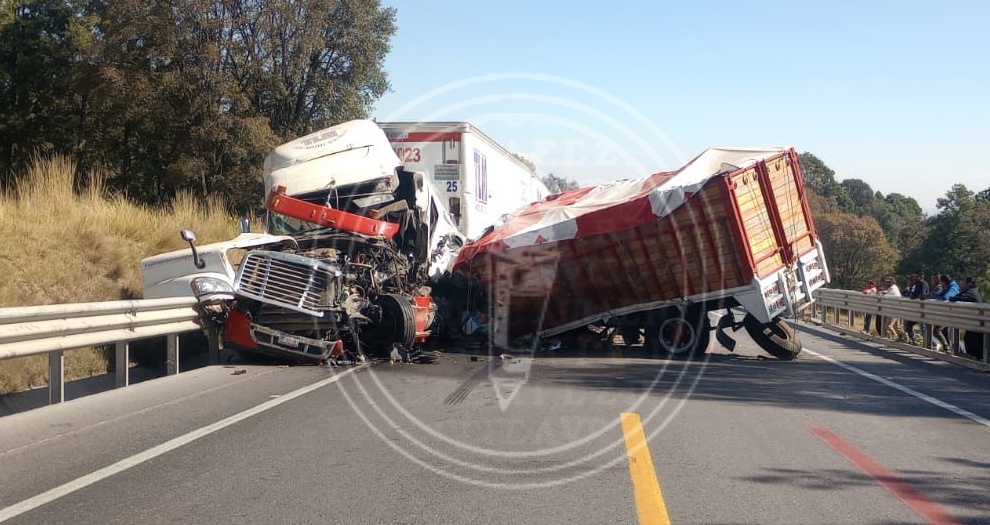 El impacto se registró entre un tráiler doble remolque y un torton, en el kilómetro 21, por lo que arribaron elementos de seguridad de distintas corporaciones