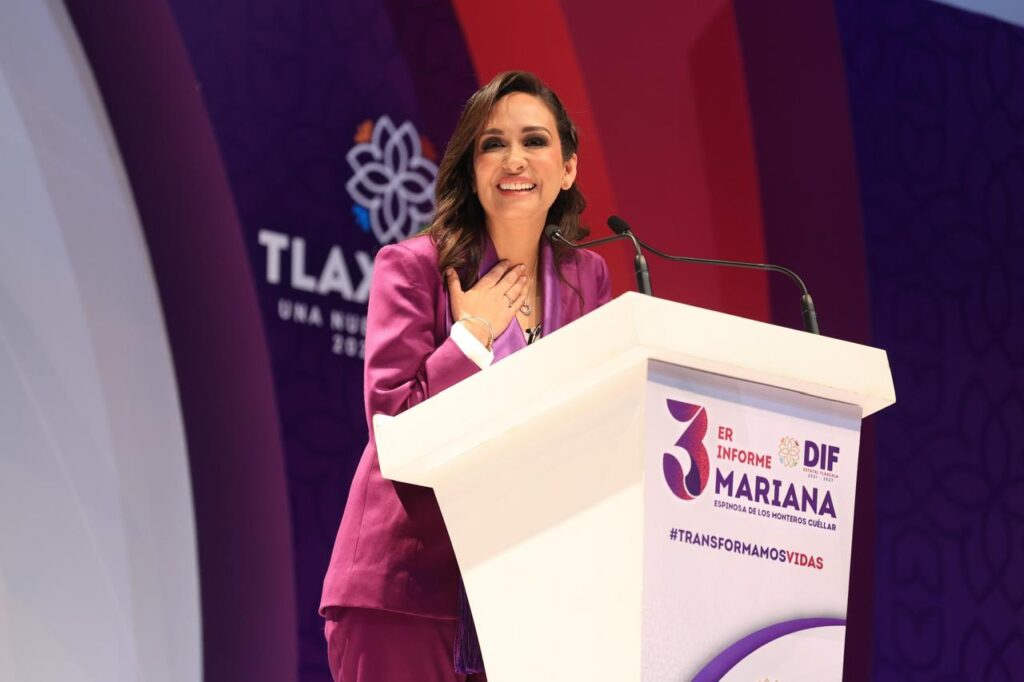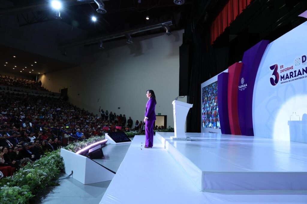 En el marco del Tercer Informe de Actividades del SEDIF, realizado en el Centro Cultural Universitario de Tlaxcala, la mandataria estatal agradeció a María del Rocío García Pérez, titular del Sistema Nacional DIF, por su acompañamiento, y al Gobierno de México, que encabeza la presidenta Claudia Sheinbaum Pardo, por todo el respaldo que Tlaxcala ha recibido a favor del bienestar de las familias de la entidad.