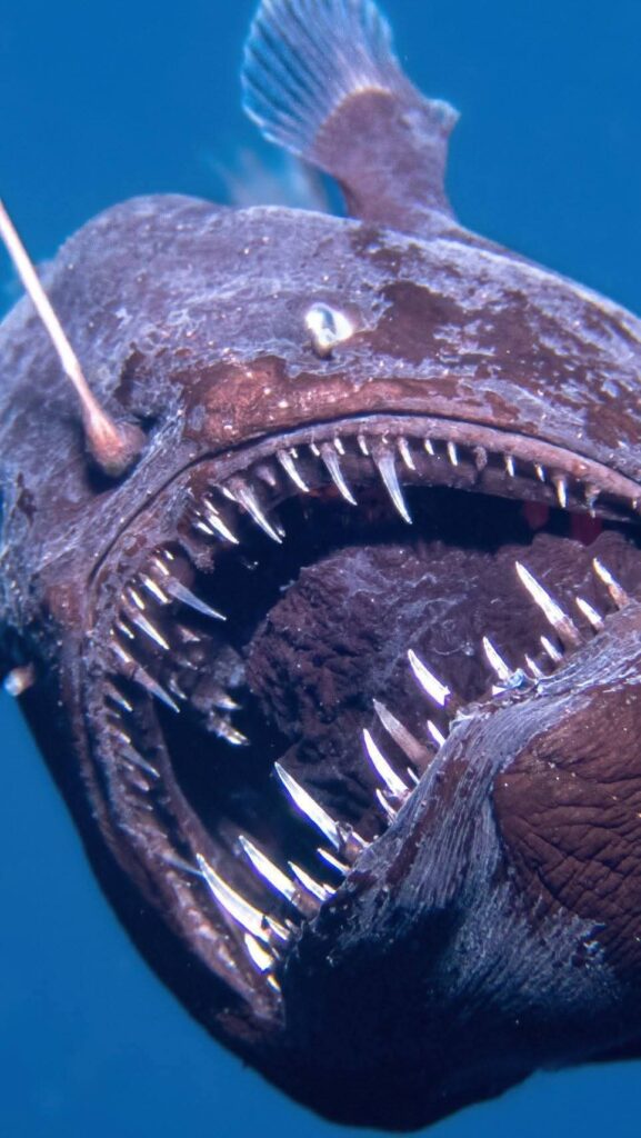 El rape abisal, también conocido como «pez diablo negro», es una criatura que habita en las profundidades marinas, a más de 1000 metros de profundidad, donde la luz solar no llega. Su apariencia es intimidante, con un cuerpo oscuro, una gran boca llena de afilados dientes y un apéndice bioluminiscente que utiliza para atraer a sus presas en la oscuridad.