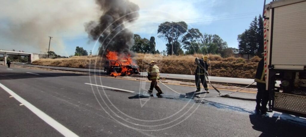 Camioneta choca y se incendia en autopista Tlaxcala-Texmelucan; ocupantes huyen del lugar