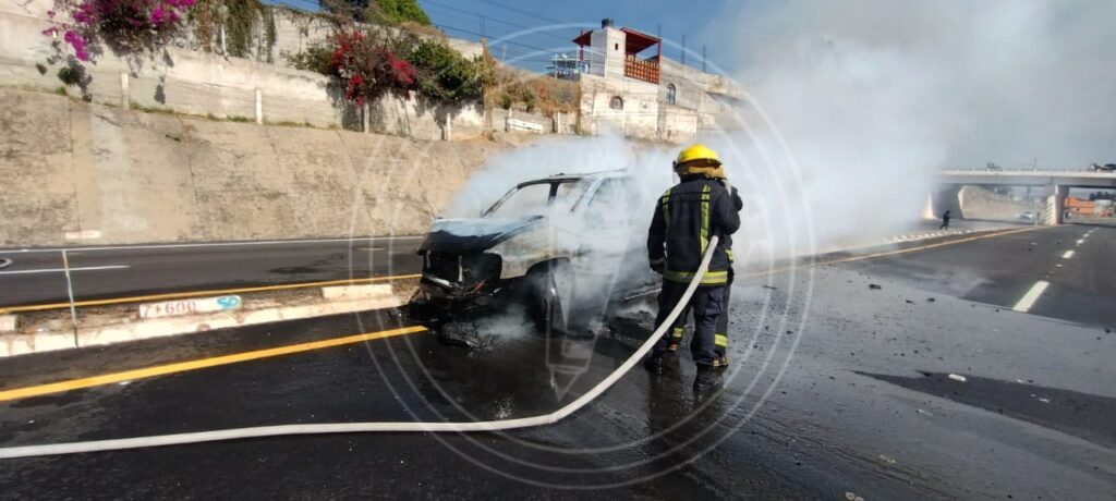 El aparatoso accidente ocurrió a las 11:05 horas cuando el conductor de la camioneta, que viajaba a exceso de velocidad, perdió el control y se impactó contra el muro de contención. La camioneta se desvió hacia el sentido contrario y comenzó a arder en llamas.