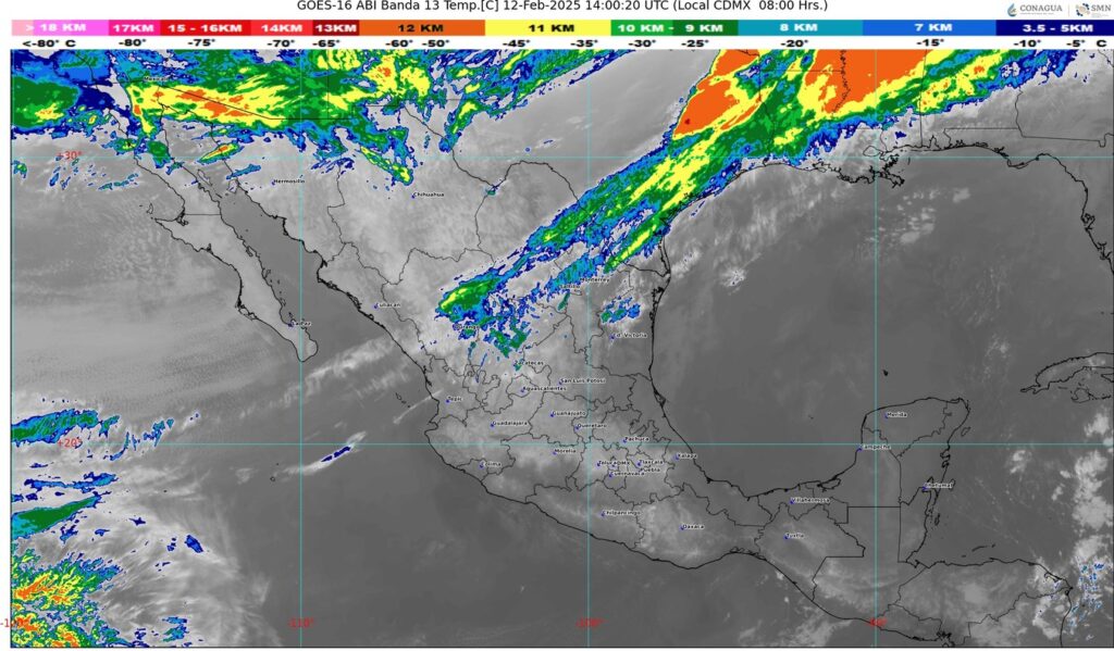 Un sistema frontal y una vaguada en niveles altos de la atmósfera se desplazarán sobre el norte y noreste de México, generando vientos con rachas muy fuertes a intensas y lluvias en varias regiones del país.