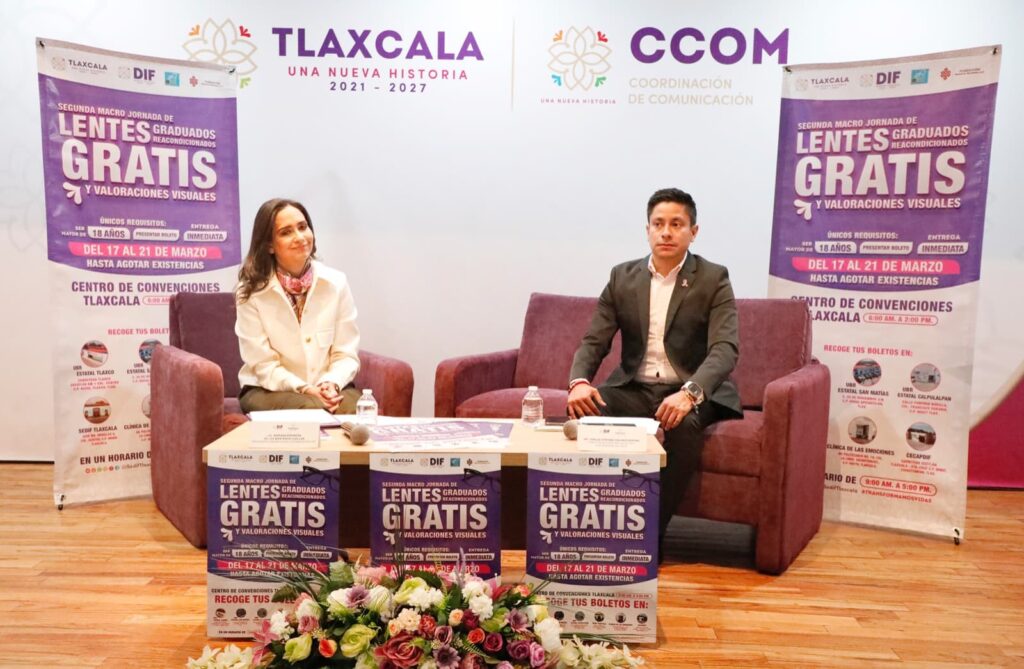En conferencia de prensa, Mariana Espinosa de los Monteros Cuéllar, presidenta honorífica del Sistema Estatal DIF, acompañada del director de atención a la salud y discapacidad del organismo, Carlos Stefano Galindo Nohpal, explicaron que la Macro Jornada está dirigida a la población de 18 años de edad en adelante, con el objetivo de mejorar la salud visual de las y los tlaxcaltecas; además, busca ofrecer a las personas la oportunidad de acceder a lentes graduados reacondicionados gratuitos y recibir valoraciones visuales de manera profesional.