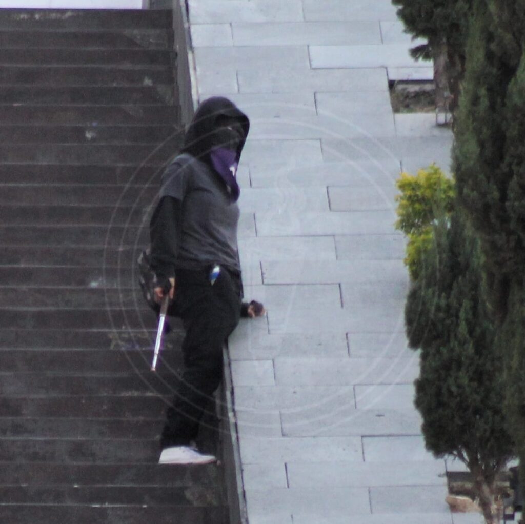 Y otro grupo de este bloque negro arrancó un poste de luz, para usarlo al intentar derribar una de las vallas de metal que se encontraban alrededor de Palacio de Gobierno. Acción que nunca vulneró la valla y al final desistieron, no sin antes treparse parcialmente a una de ellas.