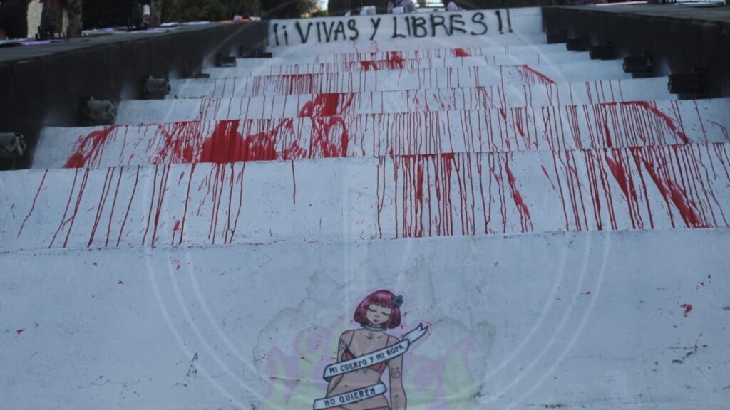 En la plaza principal, las manifestantes colocaron una ofrenda frente a Palacio de Gobierno.