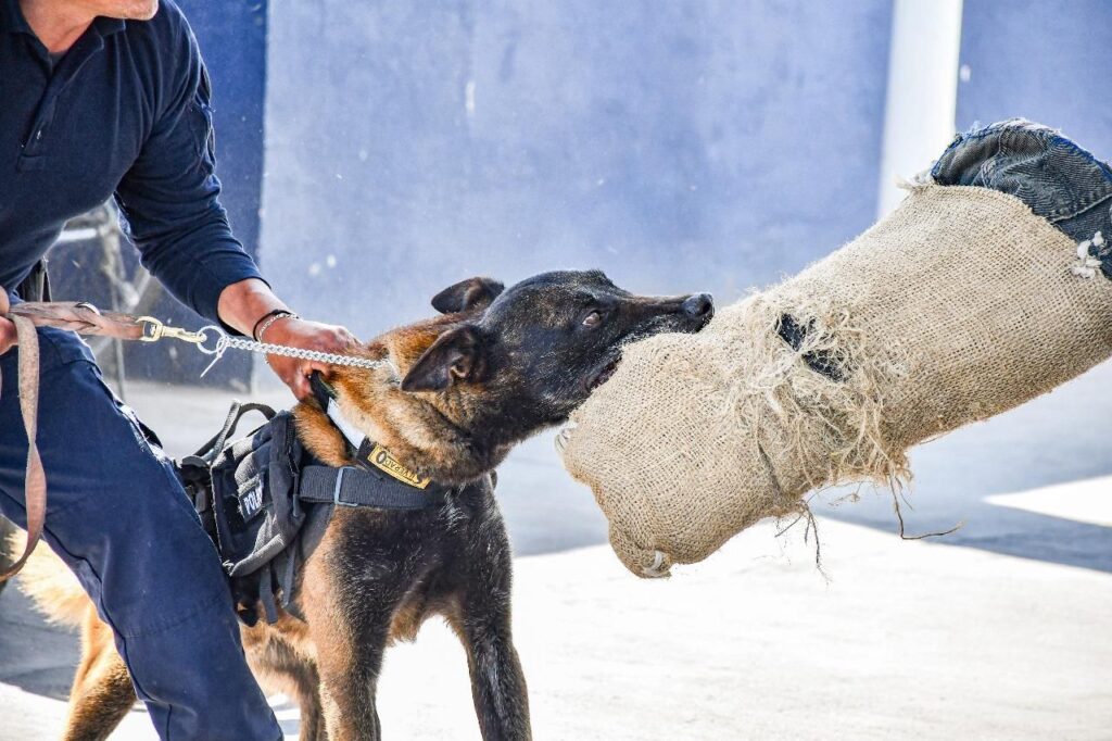 Uno de los entrenadores, el oficial Bretón, dio una demostración del trabajo de los canes, quienes están preparados para el trabajo policial en jornadas que garanticen su adecuado desempeño, sin llegar al desgaste.