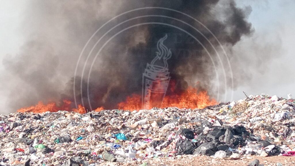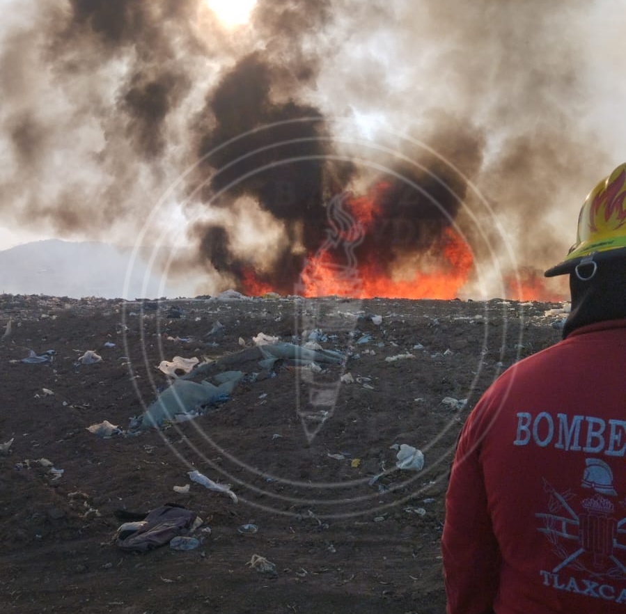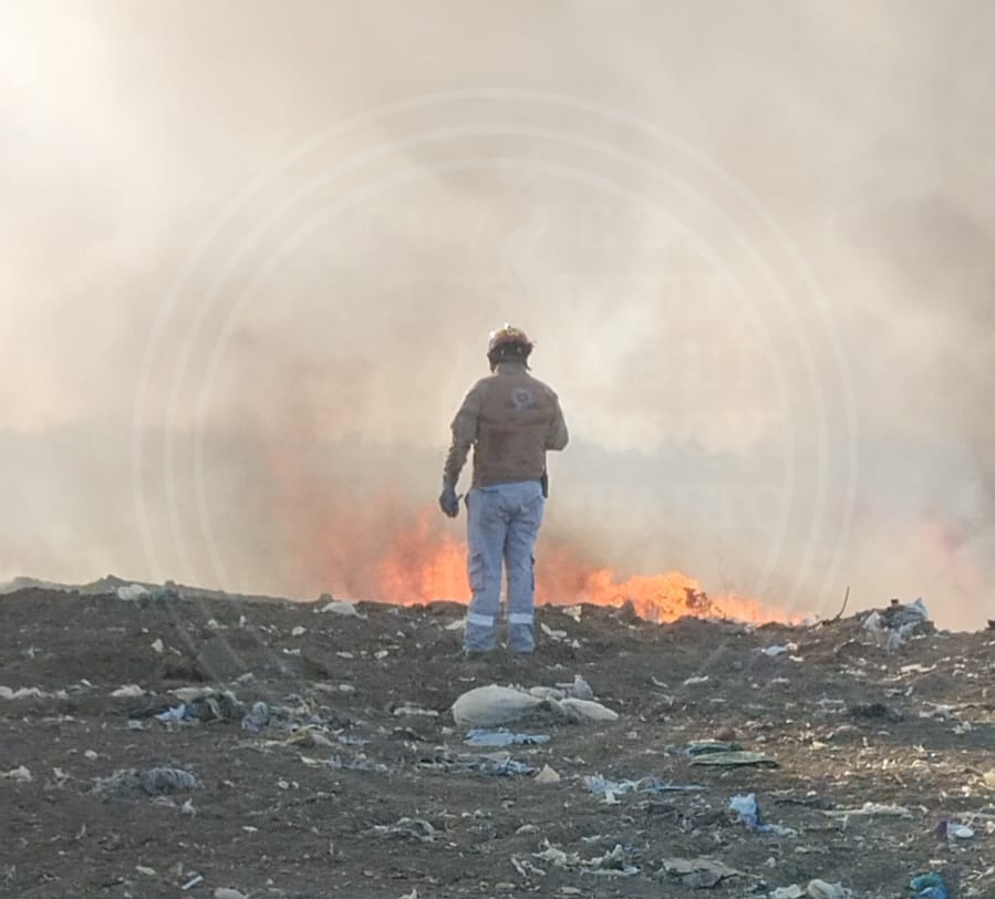 Este lunes, un incendio se desató en el relleno sanitario ubicado en Nanacamilpa, límites con la comunidad de Mazapa, municipio de Calpulalpan.