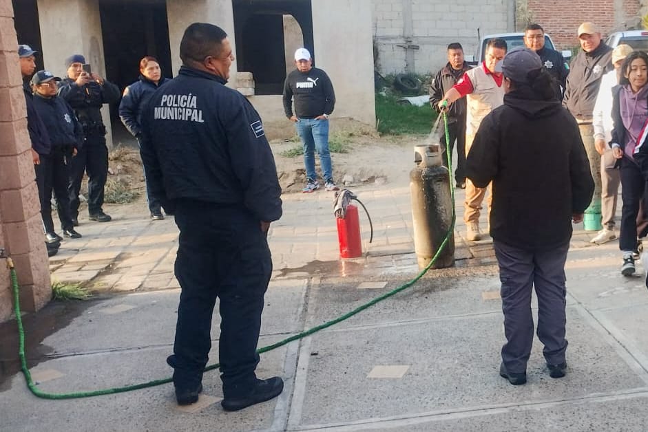 Elementos de Protección Civil y Seguridad Municipal brindaron atención la mañana de este jueves a una familia que reportó un conato de incendio en el interior de su vivienda, ubicada en Calle Victoria, ocasionado por la caída accidental de un tanque de gas.