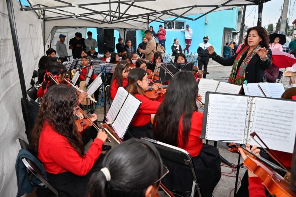 Apenas este viernes, por gestión del Ayuntamiento, a través de la Coordinación de Cultura, la orquesta se presentó en San Sebastián, donde las niñas, niños y adolescentes mostraron su talento en la ejecución de diversos instrumentos que alegraron la tarde y atrajeron el interés de las familias que acudieron a disfrutar de los tradicionales muéganos.