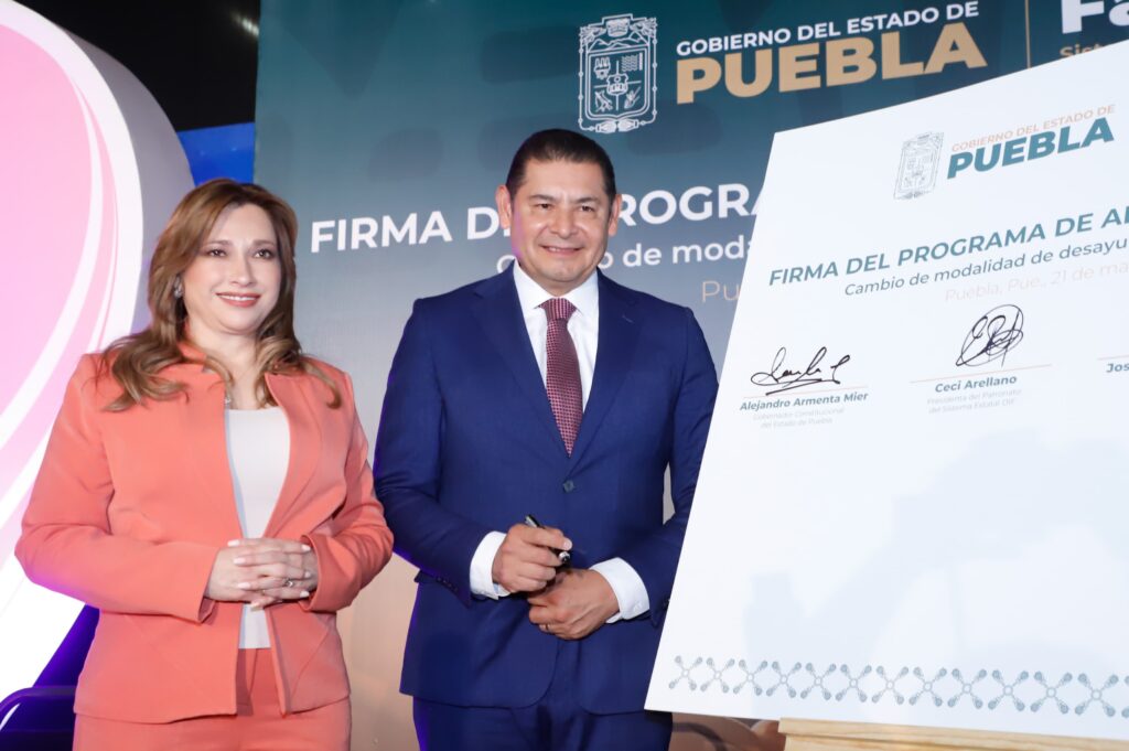 Con el propósito de otorgar alimentos nutritivos a las y los menores de edad de la entidad, y alineados con la política de vida saludable en instituciones educativas de la presidenta Claudia Sheinbaum, el gobernador Alejandro Armenta y la presidenta del Patronato del Sistema Estatal DIF, Ceci Arellano, llevaron a cabo la firma de convenio del Programa de Alimentación Escolar, para cambiar de la modalidad de desayunos fríos a calientes.