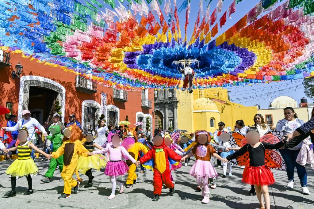 Así que se pudieron observar desde abejitas, mariposas, ranas, conejos, catarinas, guacamayos, pavorreales, flores multicolores, entre otros personajes de cuento, que engalanaron las calles de Huamantla este 21 de marzo, día del inicio de la primavera.