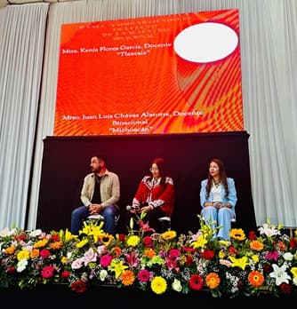En tanto, la docente tlaxcalteca Kenia Flores García, participó como panelista con la ponencia “Trayecto de un maestro”.
