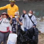 Junto a la presidenta de México, Claudia Sheinbaum Pardo y la gobernadora Lorena Cuéllar Cisneros, usaron palas, picos, bolsas, guantes y cubrebocas para apoyar para levantar la basura, y cortar maleza.