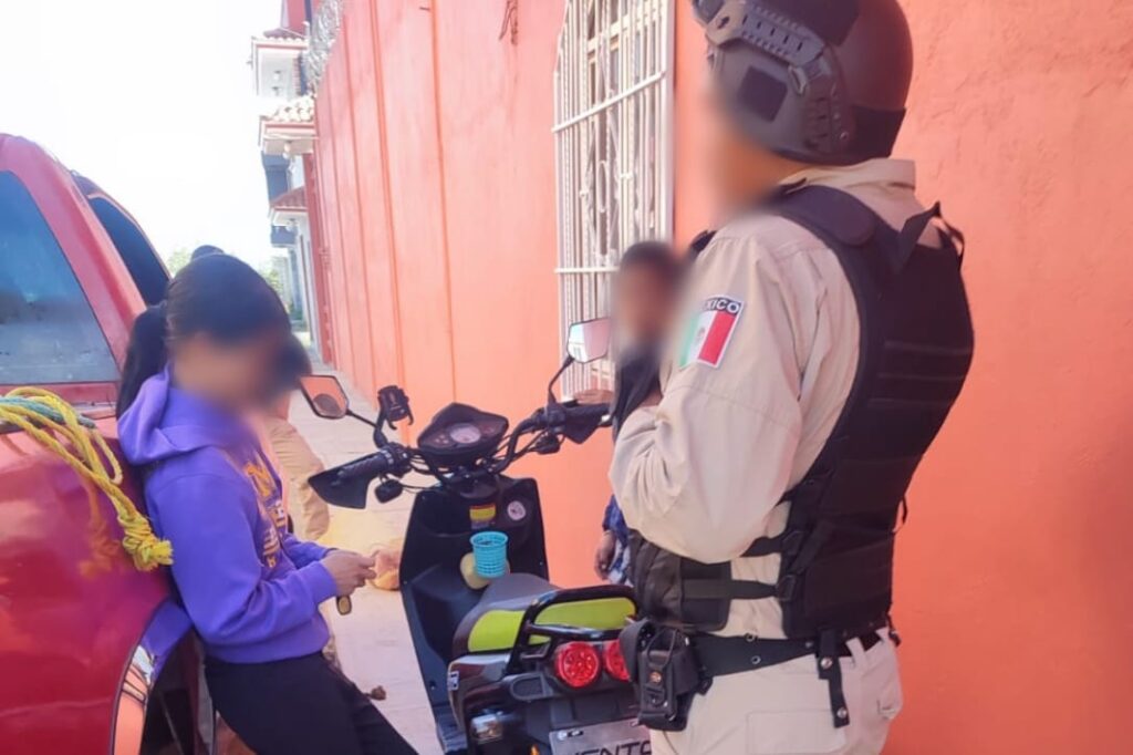 Tras recibir el reporte de un conductor, los elementos de la policía municipal ubicaron a los adolescentes quienes transitaban en sentido contrario y de forma negligente en una motoneta de color verde con negro.