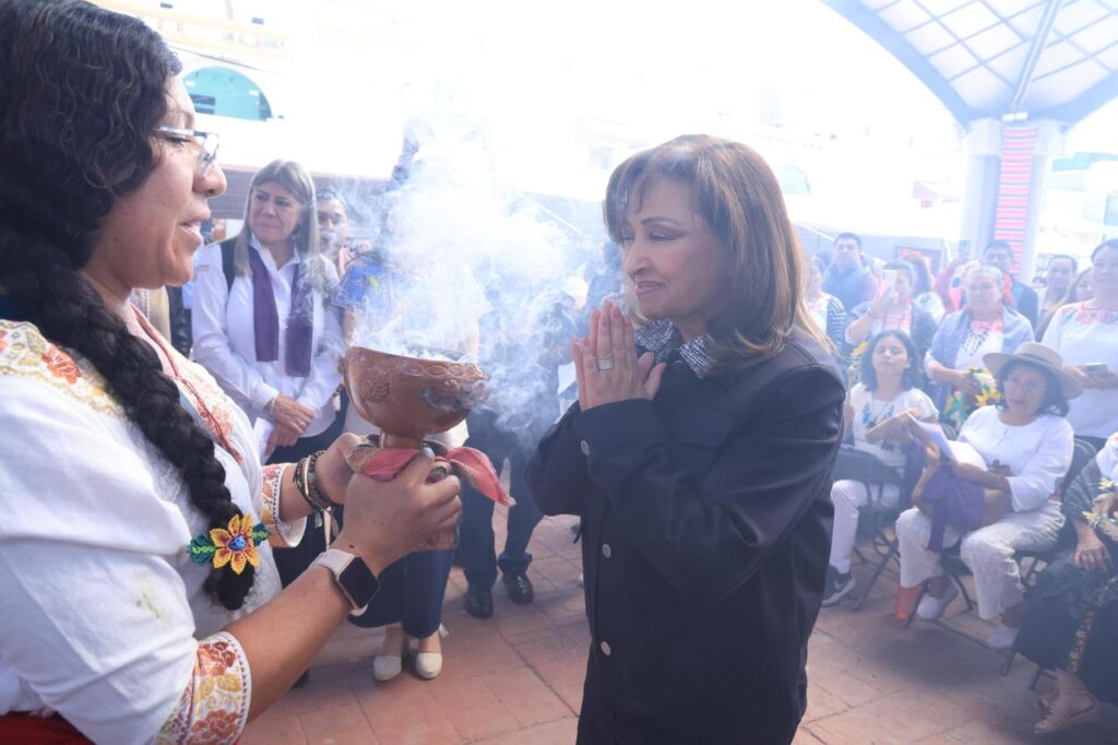 Antes, la subsecretaria para una vida Libre de Violencias, Ingrid Gómez Saracibar, y la directora general de Financiera para el Bienestar, María del Rocío Mejía Flores, ambas del gobierno de México, también participaron el ritual que preserva las raíces tlaxcaltecas.