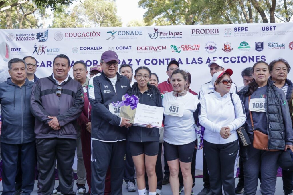 El gobierno del estado, a través de la Secretaría de Educación Pública del Estado y de la Unidad de Servicios Educativos del Estado de Tlaxcala (SEPE-USET), en coordinación con el Instituto del Deporte de Tlaxcala (IDET) y el municipio de Tlaxcala, celebró la Carrera por la Paz y contra las Adicciones, en la que participaron cerca de 2 mil personas.