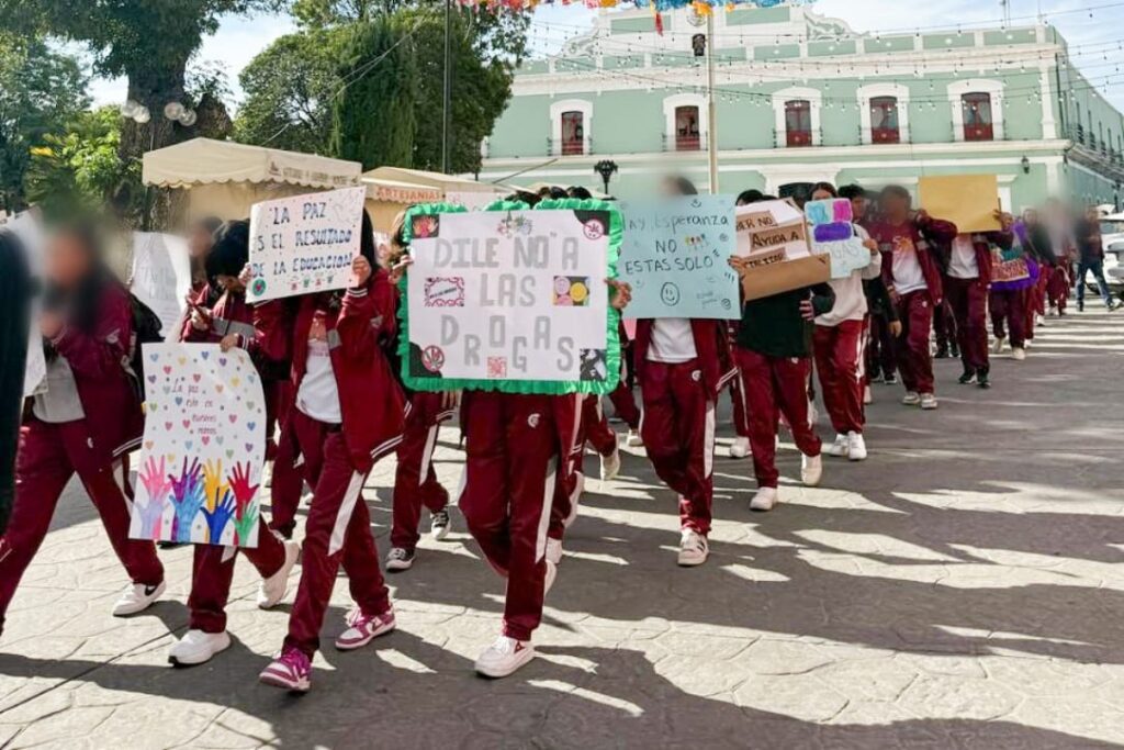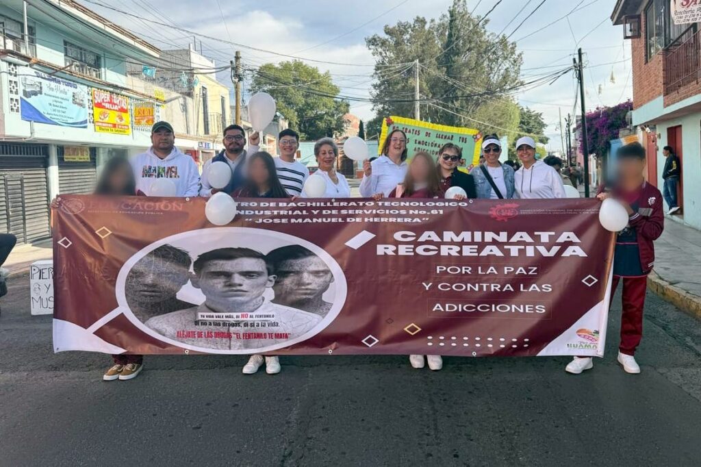 En un esfuerzo conjunto para prevenir el consumo de fentanilo entre los jóvenes, el Gobierno de Huamantla y el Centro de Bachillerato Tecnológico, Industrial y de Servicios (CBTis) No.61, organizaron la mañana de este lunes la «Caminata por la Paz y Contra las Adicciones» en el centro de la ciudad, como parte de la campaña nacional «Aléjate de las Drogas, el Fentanilo Mata».