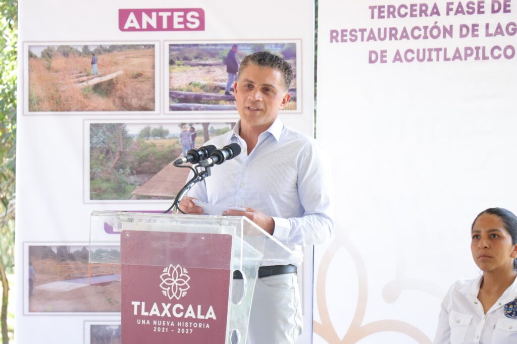 Con el objetivo de crear una conciencia ambiental y en un esfuerzo conjunto para rescatar uno de los espacios naturales más emblemáticos del municipio, el presidente de Tlaxcala, Alfonso Sánchez García constató junto con la gobernadora del estado, Lorena Cuéllar, los avances en la ejecución de las acciones de restauración de la Laguna de Acuitlapilco en su tercera fase.