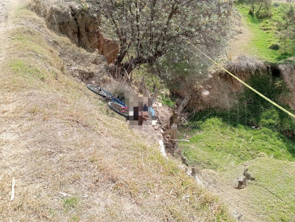 Tereso de Jesús N, de 65 años, originario de esa población, por causas desconocidas, perdió el control de su bicicleta y cayó a un barranco de aproximadamente tres metros de profundidad.