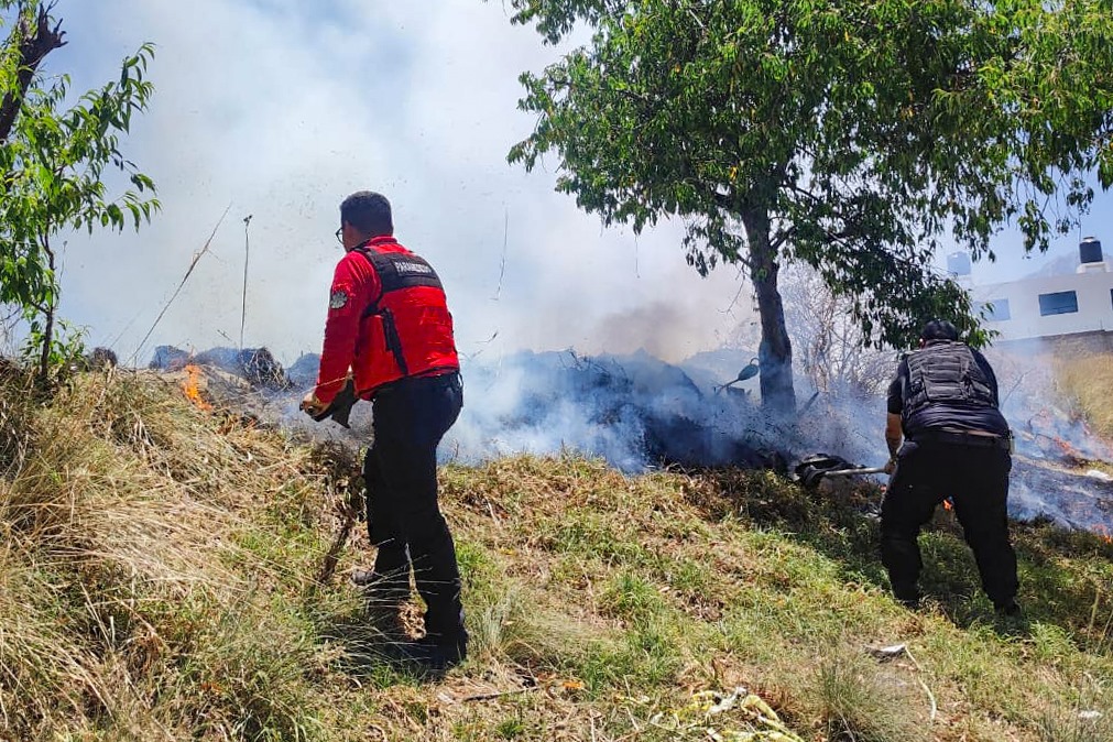 Casi de manera simultánea, el personal municipal atendió un conato de incendio en pastizales ubicados sobre el bulevar Yancuitlalpan, donde una densa cortina de humo alertó a la población.
