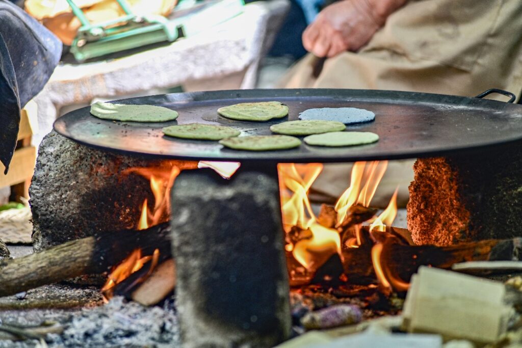 En tanto que el Atole de Nopal es una bebida espesa y nutritiva, elaborada con ingredientes de la milpa como el maíz y el nopal. “El atole de nopal es algo que hemos ido adaptando”, explica doña Gloria, “porque siempre estamos buscando cómo aprovechar lo que tenemos y seguir cocinando con lo que nos da la milpa”.