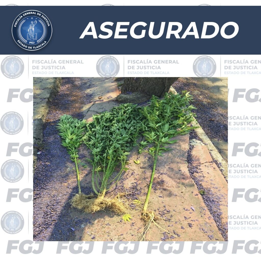 La Policía de Investigación de la Fiscalía General de Justicia del Estado (FGJE) aseguró tres plantas verdes con características propias de la marihuana, localizadas en el municipio de Tlaxcala.