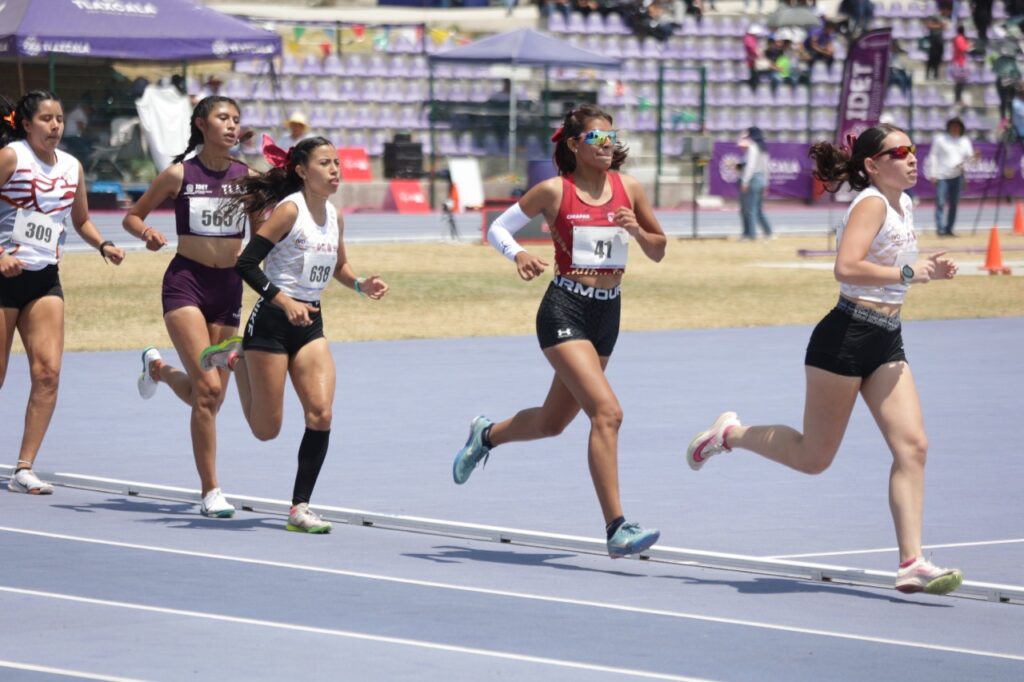 En la prueba femenil de los 2 mil metros carrera sub 16, la tlaxcalteca Evangeline Sánchez, obtuvo la gloria del primer lugar y, por ende, representará a Tlaxcala en esta prueba en la Olimpiada Nacional Conade 2025, al desplazar al segundo y tercer lugar a las competidoras Aishling Pérez, del Instituto Mexicano del Seguro Social (IMSS) y a Angelina Bocanegra, del estado de Hidalgo.