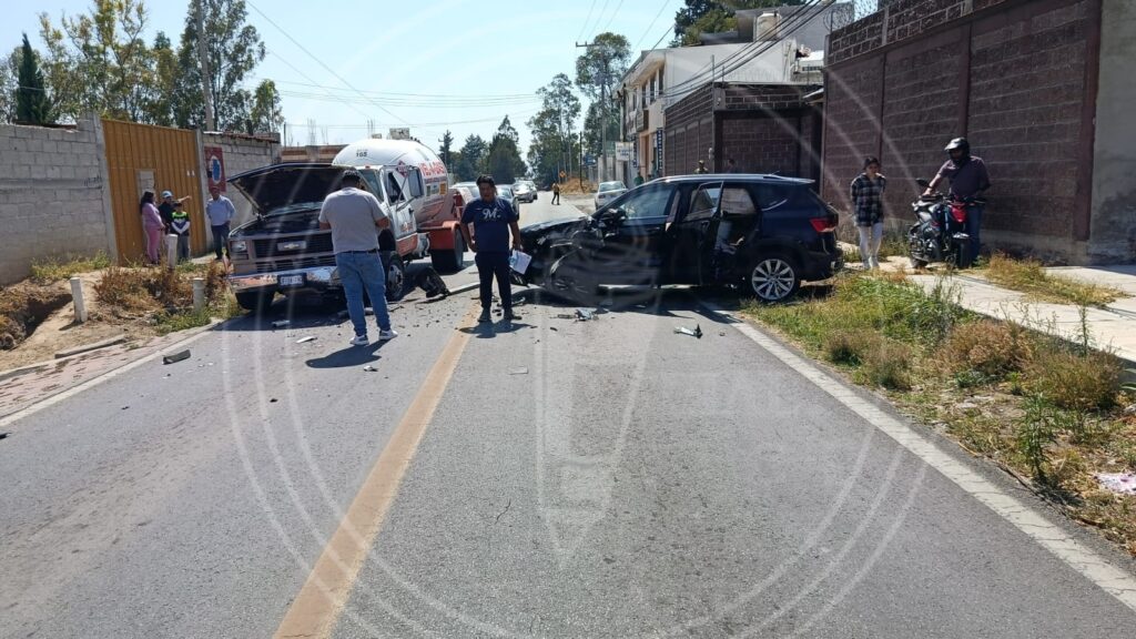 Un accidente se registró en la carretera Texoloc-Tlaxcala, a la altura de San Diego Metepec, en Tlaxcala, cuando una camioneta particular y una pipa de gas LP. chocaron.