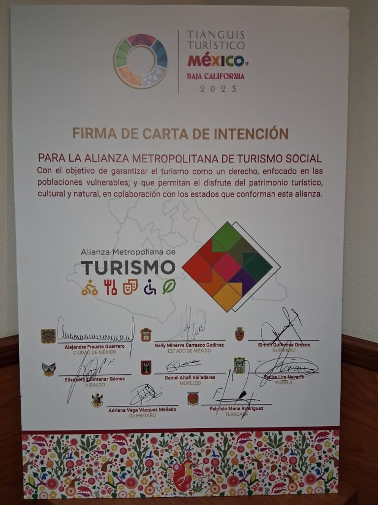 El titular de la Secretaría de Turismo del Estado (Secture), Fabricio Mena Rodríguez, firmó la Carta de Intención para sumarse a «La Alianza Metropolitana de Turismo Social», para garantizar el turismo como un derecho enfocado especialmente en las poblaciones vulnerables.