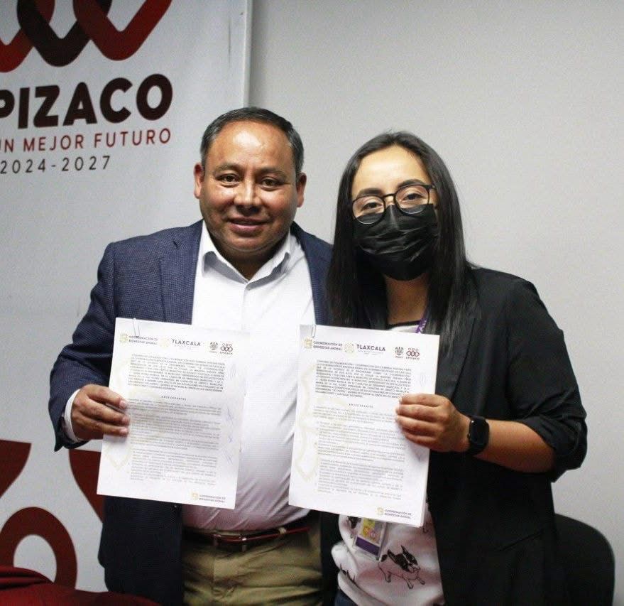 El presidente de Apizaco Javier Rivera Bonilla y la Coordinadora de Bienestar Animal del Gobierno del Estado de Tlaxcala, la Mtra. Stefany Pérez Bustamante, firmaron un convenio de colaboración para garantizar la correcta aplicación del Reglamento de Tenencia Responsable de Animales de Compañía, según lo establecido por la Ley de Bienestar Animal.