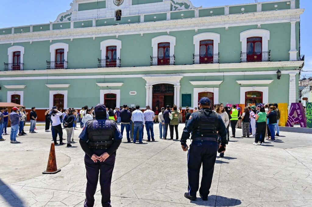 Ante ello, personal del Ayuntamiento desalojó de manera ordenada el edificio de dos niveles, siguiendo las recomendaciones básicas: no correr, no gritar y no empujar.