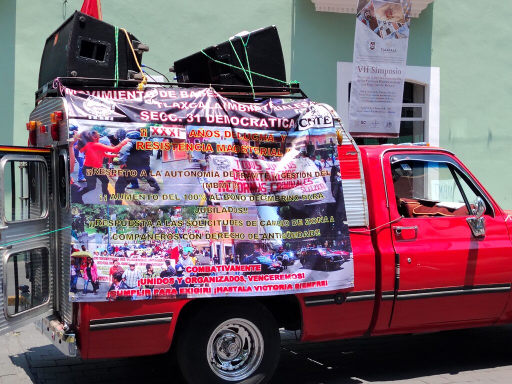 En el marco del Día Internacional del Trabajo, integrantes del Movimiento de Bases Magisteriales de Tlaxcala, Sección 31 Democrática (MBMT-CNTE), se sumaron con fuerza a la movilización que recorrió la calle Independencia y concluyó en el Zócalo de la capital tlaxcalteca.