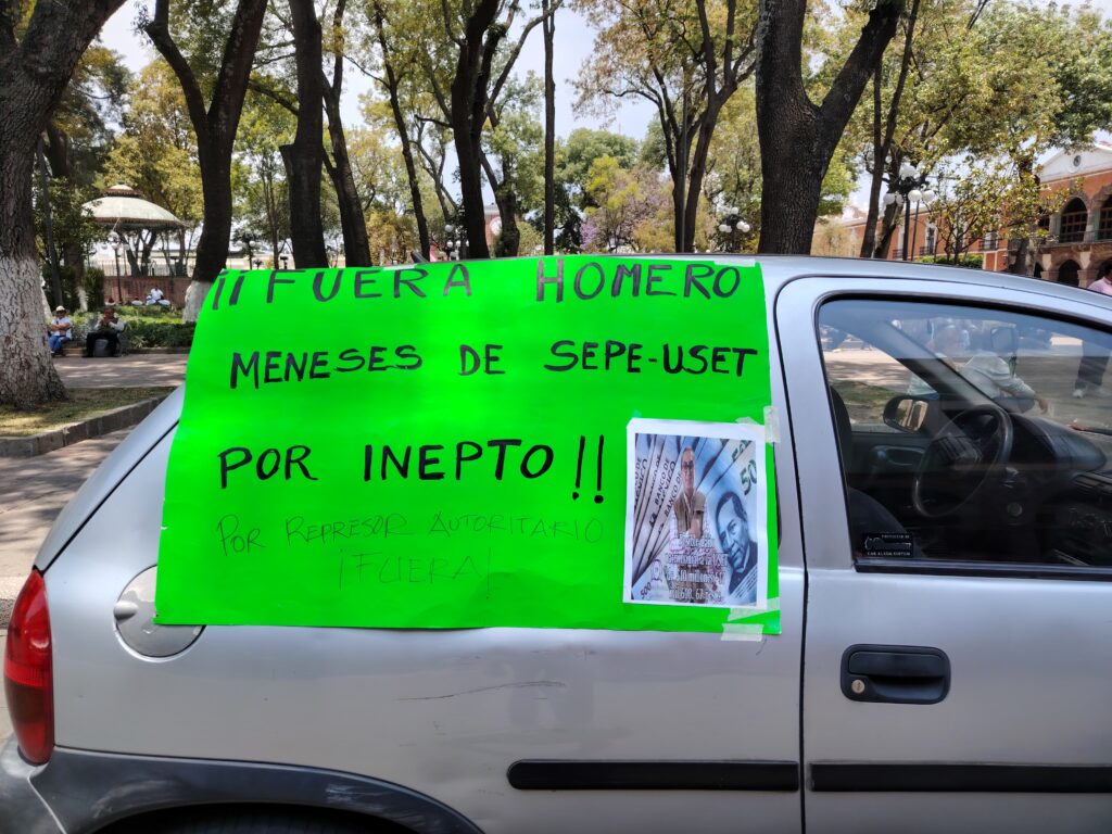 Durante la marcha, los docentes alzaron la voz contra el secretario de Educación Pública del estado, Homero Meneses Hernández, a quien acusan de centralizar el poder, imponer decisiones sin consenso y aplicar una política educativa autoritaria que, aseguran, ha generado retrocesos y malestar en las bases magisteriales.