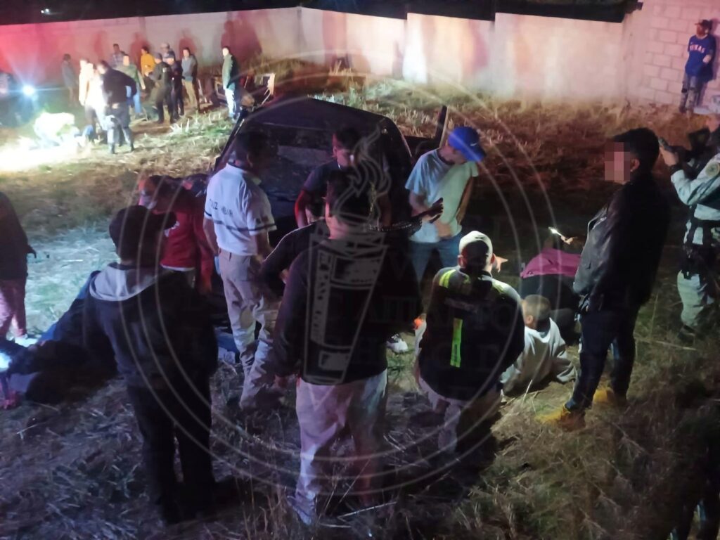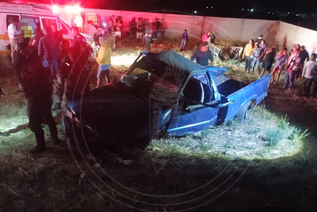 Un aparatoso accidente ocurrió la noche del domingo en la carretera Terrenate-Villa Real, en el municipio de Terrenate. Una camioneta Chevrolet pick up de color azul que transportaba a un grupo de catorce peregrinos volcó después de sufrir una supuesta falla mecánica en los frenos.