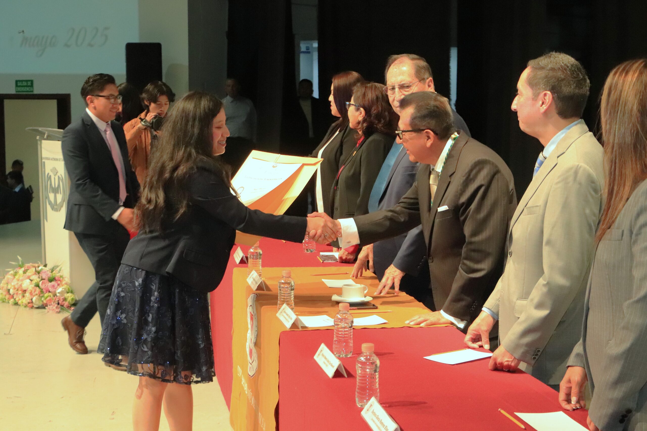 Por su parte, el Maestro Alejandro Palma Suárez, Secretario Académico, explicó que con la entrega de títulos, nuestra alma mater fortalece su vínculo con los egresados y contribuye a la construcción de una comunidad académica sólida y duradera, con un alto valor en su formación, su planta docente, su compromiso con la sociedad y con la calidad de sus egresados.