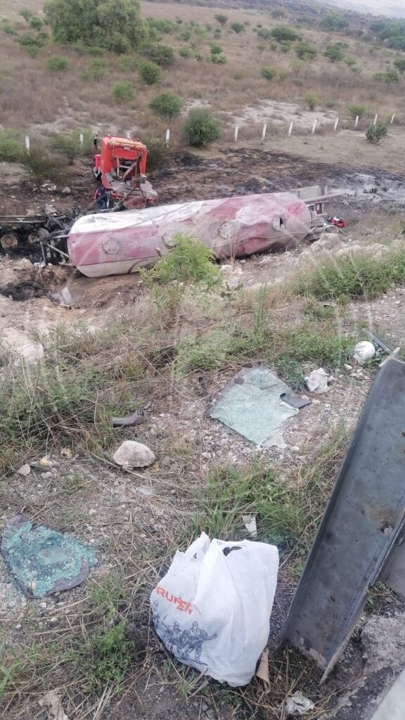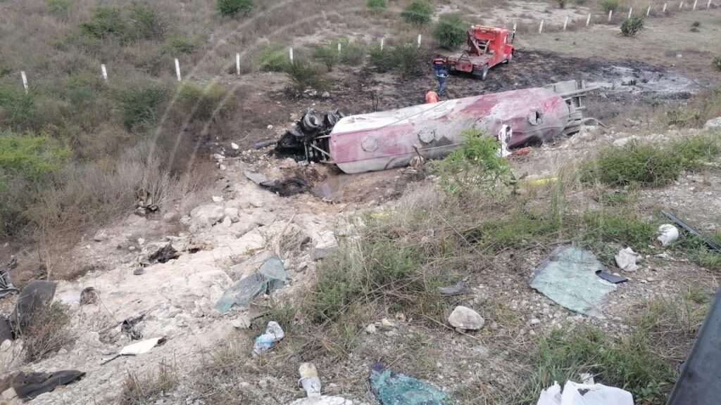 Un tractocamión de color rojo que circulaba hacia Tehuacán invadió el carril contrario y chocó contra un autobús de la línea AU y una colectiva de pasajeros, para luego precipitarse a un barranco de aproximadamente 40 metros..
