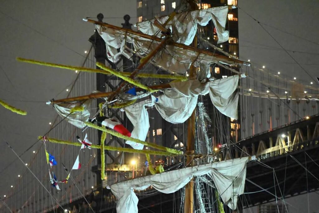 Según los primeros reportes, el buque escuela, que había llegado a Nueva York el pasado 13 de mayo como parte de su crucero de instrucción y con una misión de diplomacia pública, formación naval y promoción cultural, sufrió el percance al intentar pasar por debajo del puente. Testigos presenciales capturaron imágenes impactantes del momento del choque, donde se observan daños en la estructura del velero y a marinos colgando de los mástiles.