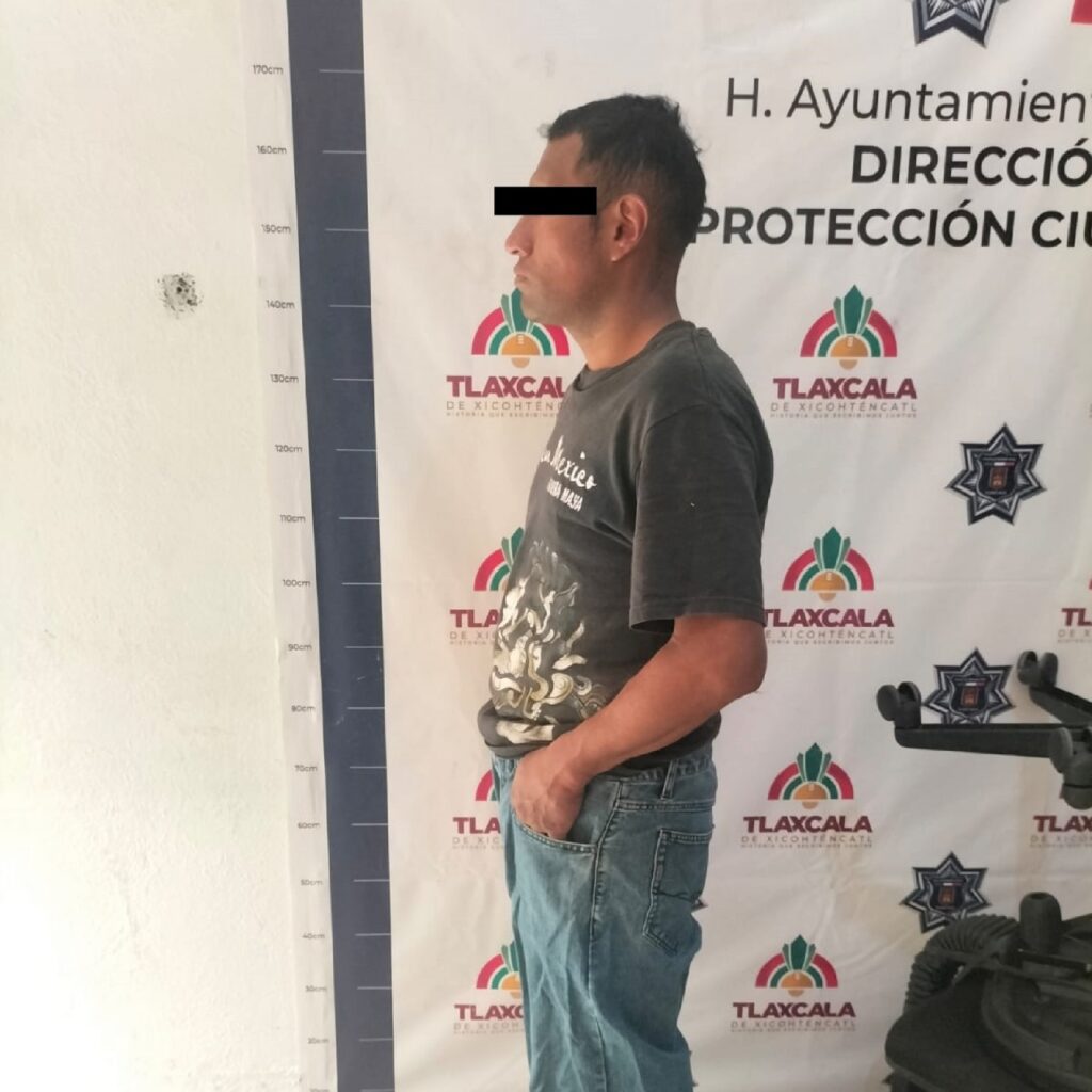 Gracias a la oportuna intervención de los agentes preventivos, se aseguró al presunto responsable, identificado como José Alí N., de 39 años de edad, originario del municipio de Santa Ana Chiautempan, quien responde al alias de «El Balu».