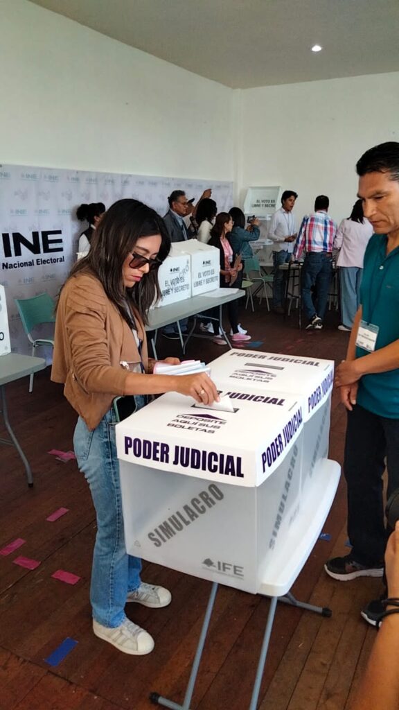 La dinámica de este ejercicio busca familiarizar a la ciudadanía con el proceso electoral que se vivirá el próximo 1 de junio, en el cual cada votante recibirá 13 boletas: seis para elegir a ministros, magistrados y jueces del ámbito federal, y siete correspondientes al ámbito local.