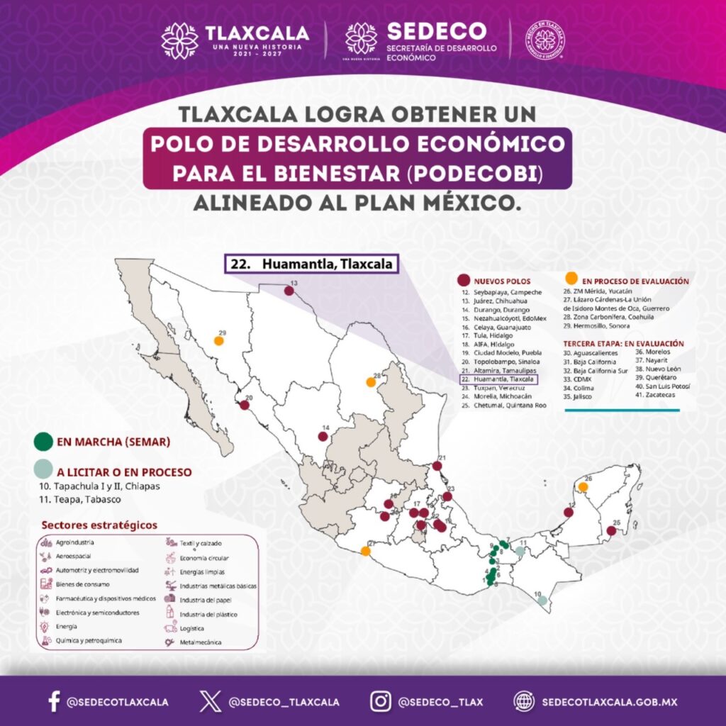 Esta mañana, el gobierno de la presidenta de México, Claudia Sheinbaum Pardo, anunció que Tlaxcala contará con un Polo de Desarrollo para el Bienestar, con lo cual el estado tendrá mejores capacidades que fomentarán su crecimiento económico y productivo, con una visión integral, sustentable, sostenible e incluyente.