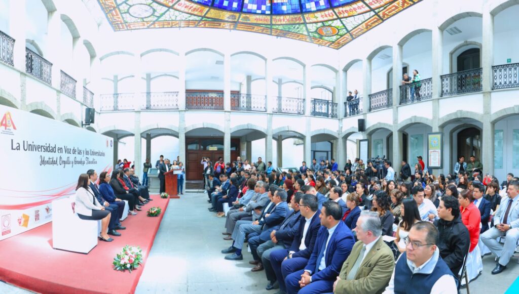 Con el foro La Universidad en voz de los universitarios «Identidad, orgullo y grandeza Tlaxcalteca» para conmemorar su inscripción con letras doradas en el Muro de Honor del Congreso de Tlaxcala